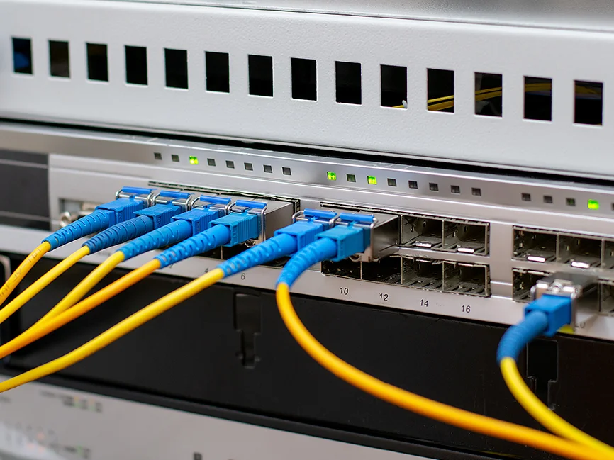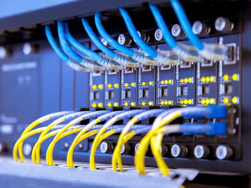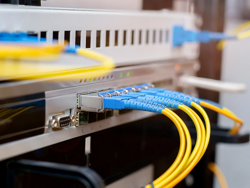 Diseño, instalación, empalme y certificación de fibra óptica para infraestructura empresarial, backbone y enlaces de larga distancia.